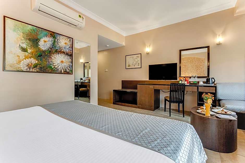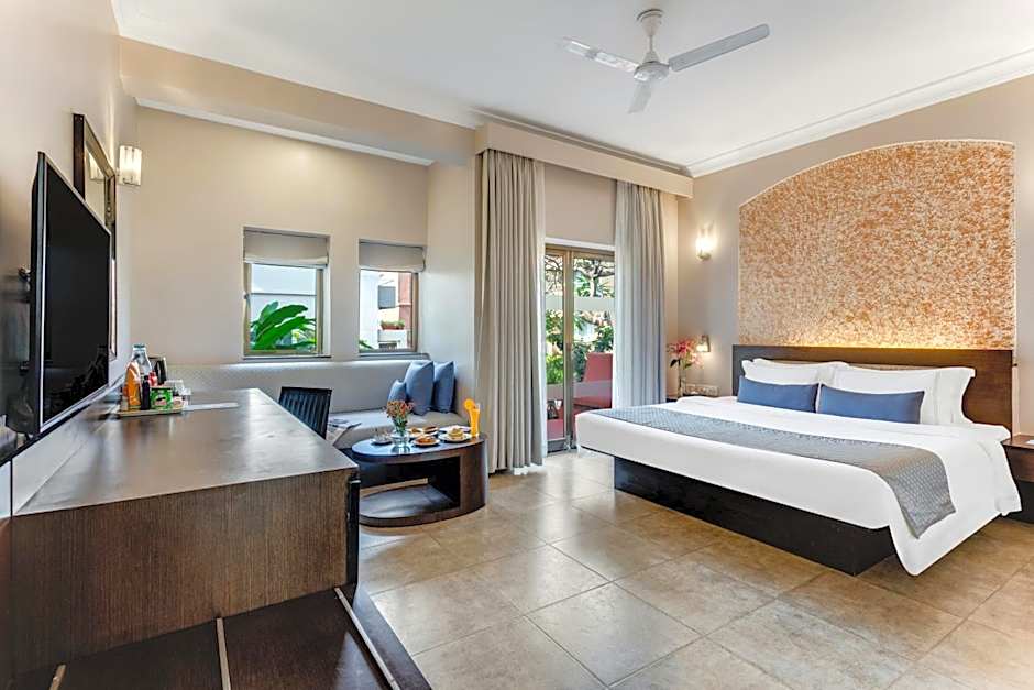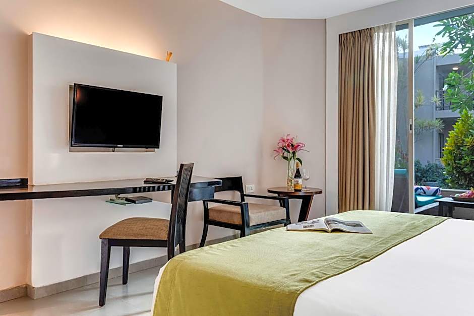 Villa Patio Room is 258 square feet and includes a double bed 131-150 width plus rollaways on demand plus balcony, terrace, extra beds on demand, desk, cable tv, hairdryer, tea and coffee making facilities , ironing set, and safe.